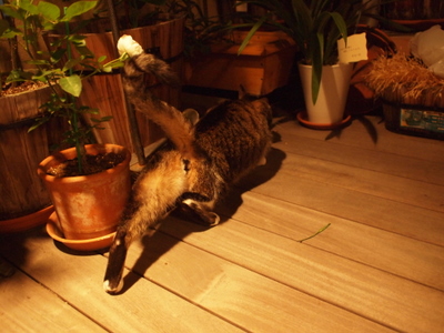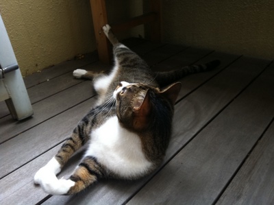 朝ヨガをしているときは一緒にベランダに出るけど、ちゃんと見ておかないと何をしでかすかわからないので、ヨガしながらも注意しています。