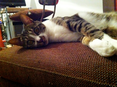 とってもかわいい。。。でも気をつけないと手が顔の上にあるので、のびーってしたときに爪が出て顔をひっかかれないようにしないと。でもすでにちょっと傷が、、、